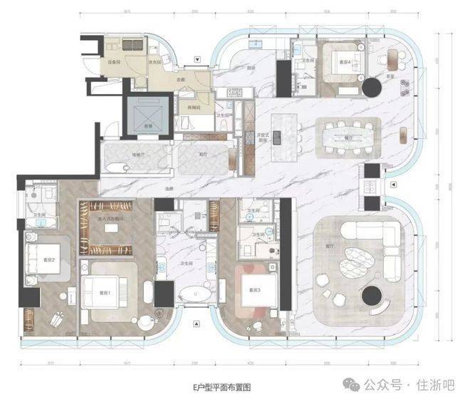 奢享空间:3.8米层高,200㎡L型大尺度会客厅,超大岛台,全套房设计,两厅独立,中西双厨……