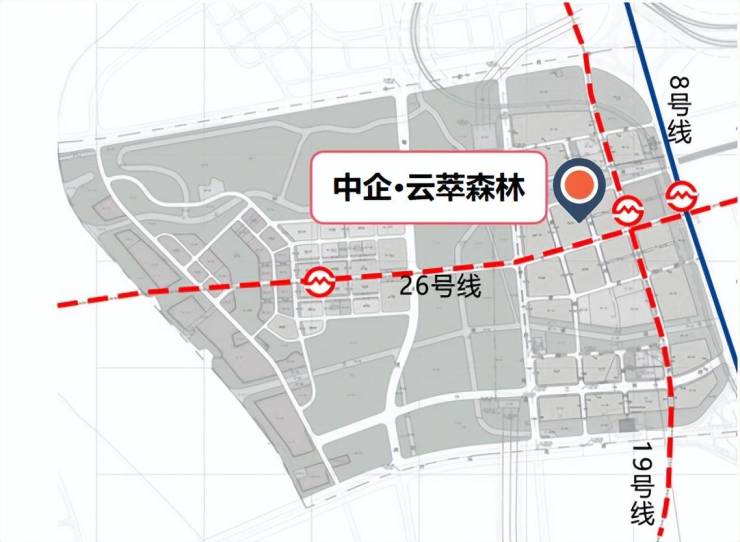8号线已经通车并运营多年,于三林滨江设有凌兆新村站,未来在这里还将能与在建中的19号线进行换乘!而该站点便在中企·云萃森林小区门口,妥妥的正三轨交盘。