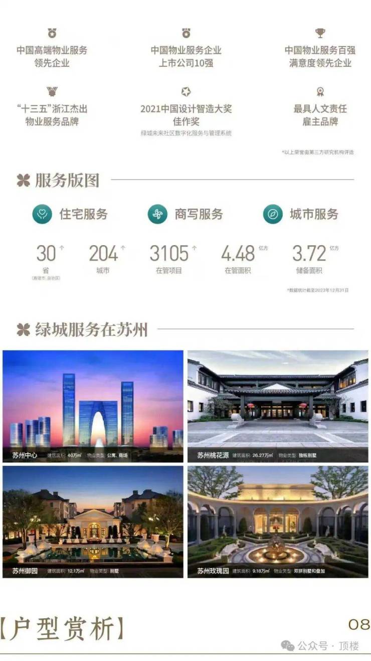 绿城服务集团成立于1998年,总部位于杭州市西湖区,是一家以物业服务为根基、以生活服务与城市服务为两翼,绿城·樾庐售楼处电话:400-9016-520⭐⭐以智慧科技为引擎的数字化、平台化、生态型的现代服务企业。自2012年进入苏州市场,绿城服务经过多年精耕细作,目前服务面积近1328万㎡,服务业主超50000户。绿城·樾庐售楼处电话:400-9016-520⭐⭐