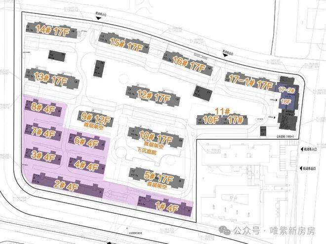 9#幢为12层小高层,11#幢为10层小高层+17层高层,其余楼栋为17层高层(主力户型预计为90-120㎡中小套型,占比45%);