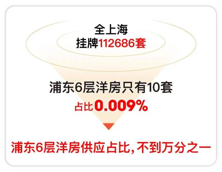 我筛选了当下链家网正在挂牌的112686套二手房,别说周浦,整个浦东房龄比较新(5年内次新房)的6层洋房也只有10套,占比仅约0.009%,不到万分之一的上车机会!稀缺程度简直溢出屏幕!