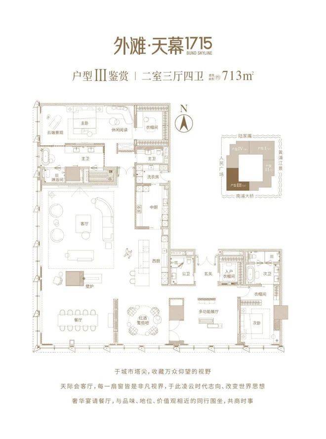 黄浦江滚滚东流,延续东方明珠的城市命脉;建筑烙印历史留痕,映射中国百余年金融、商业发展的缩影。情景间,品质自见;云端境,拥瞰黄浦……