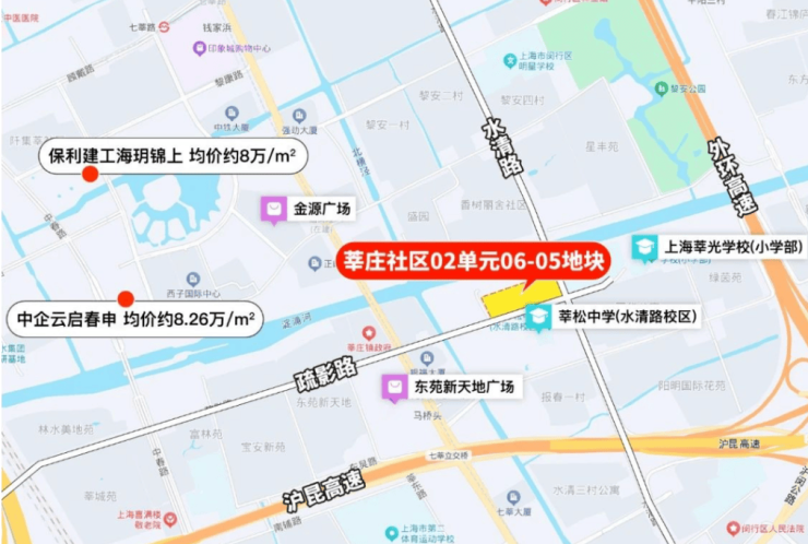 地块周边拥有从幼儿园到中学的全龄段优质教育资源。莘光学校、明星学校、莘松中学等环绕,莘松中学就在地块南侧。
