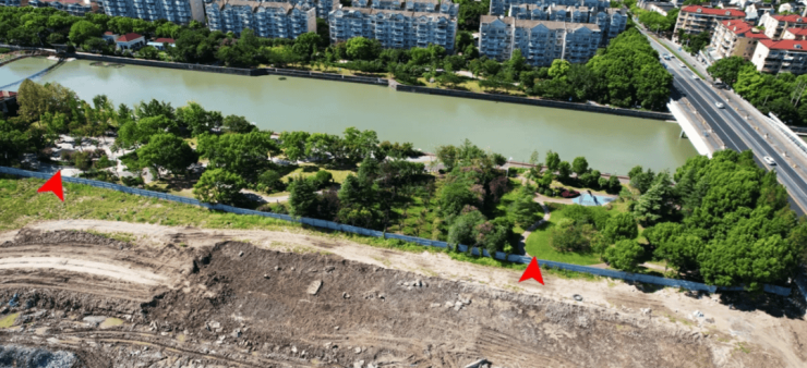 望向地块北侧,河岸绿地郁郁葱葱,淀浦河泛着粼粼波光,两岸撑起浓绿的穹顶,偶尔有白鹭掠过水面,沿河跑道蜿蜒其间,环境清幽舒适。