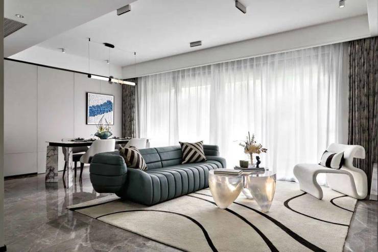 宽幕奢阔横厅设计,餐客厅一体化,直通宽境阳台,营造出了开敞明亮的家庭休闲空间,满足家庭聚会、休闲游乐等多种需求,空间开阔,功能多变,更显格局雅致不凡。