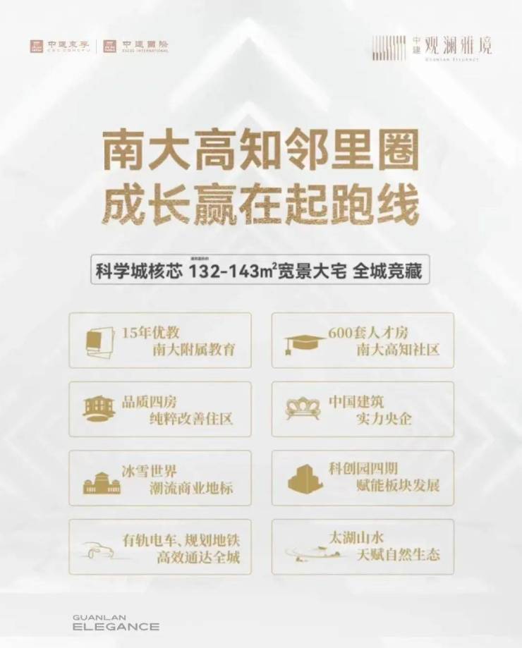 立足于太湖科学城的发展风向,一面,占位太湖科学城鎏金C位,集聚板块内商业、休闲、教育等配套,以30万方商业助力太湖科学城再进阶,一面,以南大为邻,激荡塔尖智识圈层,中建·观澜雅境以高配品质致敬时代菁英,精心打造美学天幕平层作品,为板块赋能未来,涵养城市人居的无限可能。