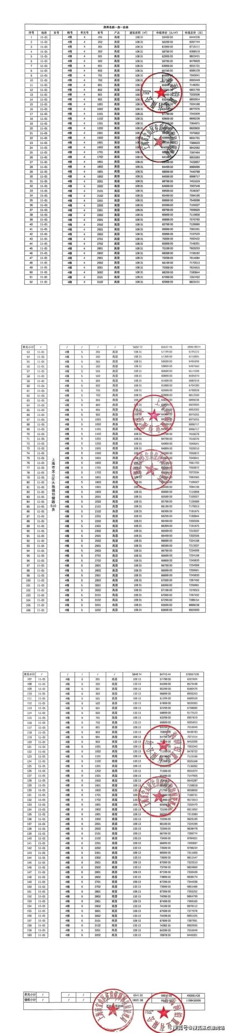 一房一价表: