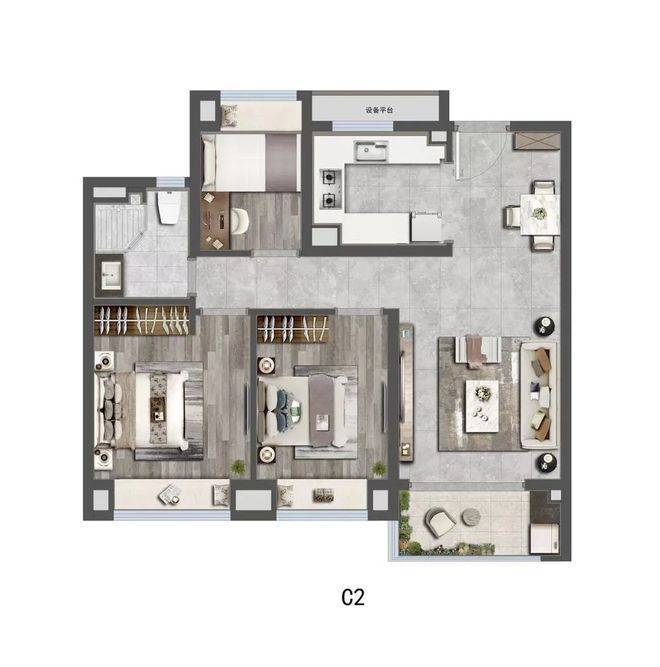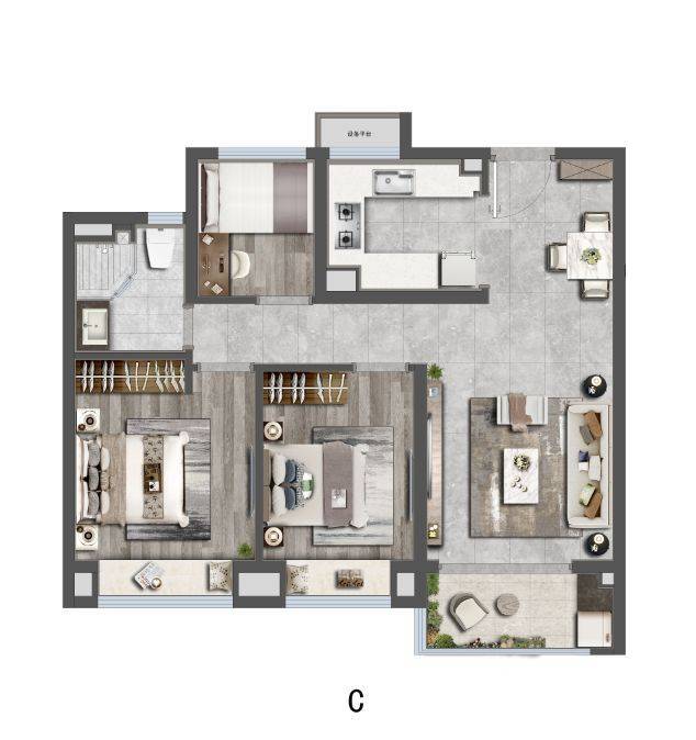 99㎡三房两卫:飞机户型,主卧套房设计,总价约453万起;