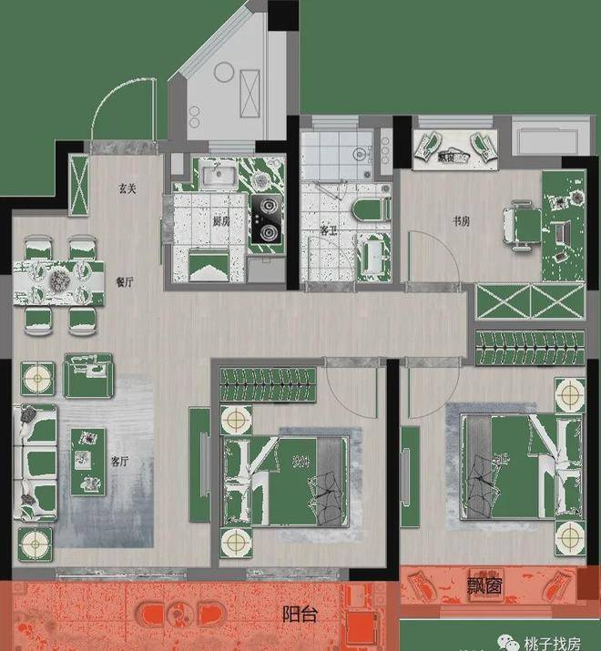 118㎡户型在设计上整体方正实用,以经典的“3+1”布局,飘窗设计,保证各个房间采光充沛和空气清新,契合成长型家庭在各个阶段的需求,当家庭迎来二胎或者三代同堂都能从容不迫。