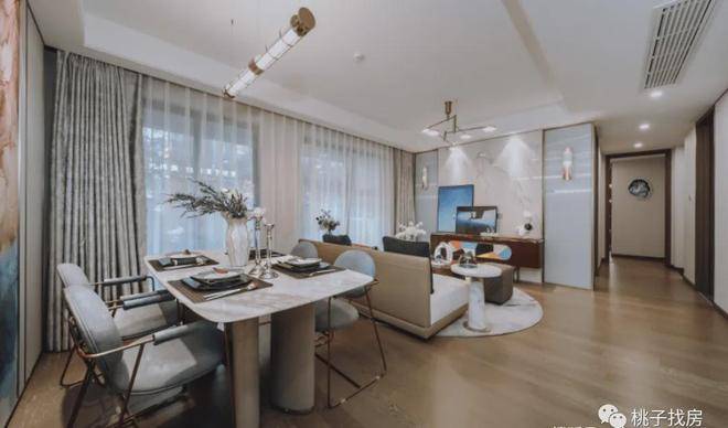 该户型,三开间朝南,南向约9.4米奢阔面宽,将充沛阳光洒落在主卧、次卧、客厅,将日常起居,从一开始,就赋予了光的特性:温暖、和煦。