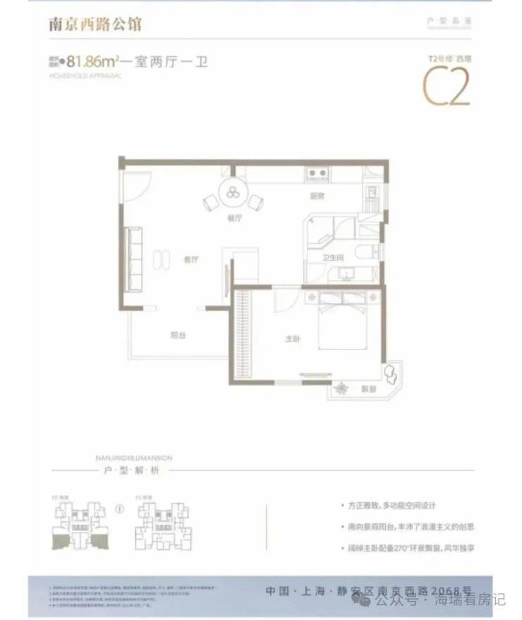 南京西路几乎“绝版“的罕见小户型:53平方米的一居室,带有小阳台的朝南主卧,户型方正的东南向客厅,采光无遮挡。小户型房源总价低,购买门槛低,加上繁华的商业位置,更是使得这片房源难得可贵!
