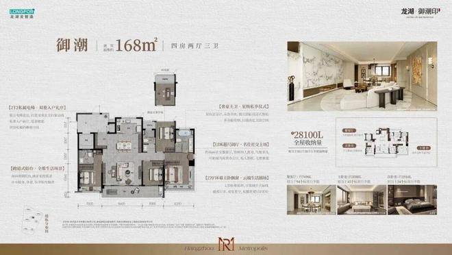 168㎡云端大平层:封面人物的“终极藏品”约16米南向面宽(四开间朝南),搭配“总统式”主卧套间,主卧套房配备270°转角飘窗,尺度比肩200㎡+产品;约15人宴客厅+多功能书房,次卫嵌入智能雾化玻璃、全屋配备龙湖智慧家居面板。
