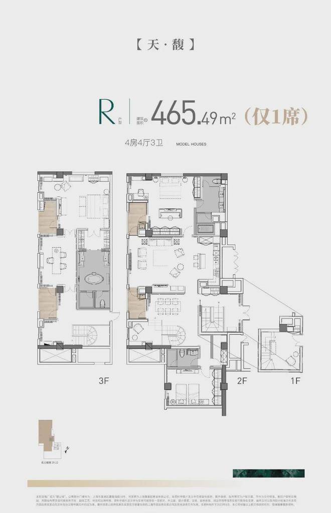 高层公寓部分以 200 平方米以上大平层户型为主,海派别墅单套地上主力面积为350-450 平方米,附赠两层地下空间。