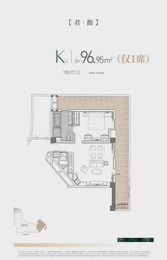 建面约96㎡一房户型图▼
