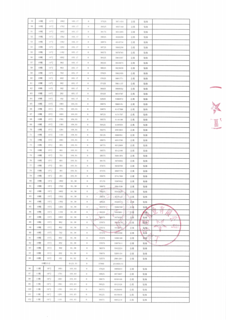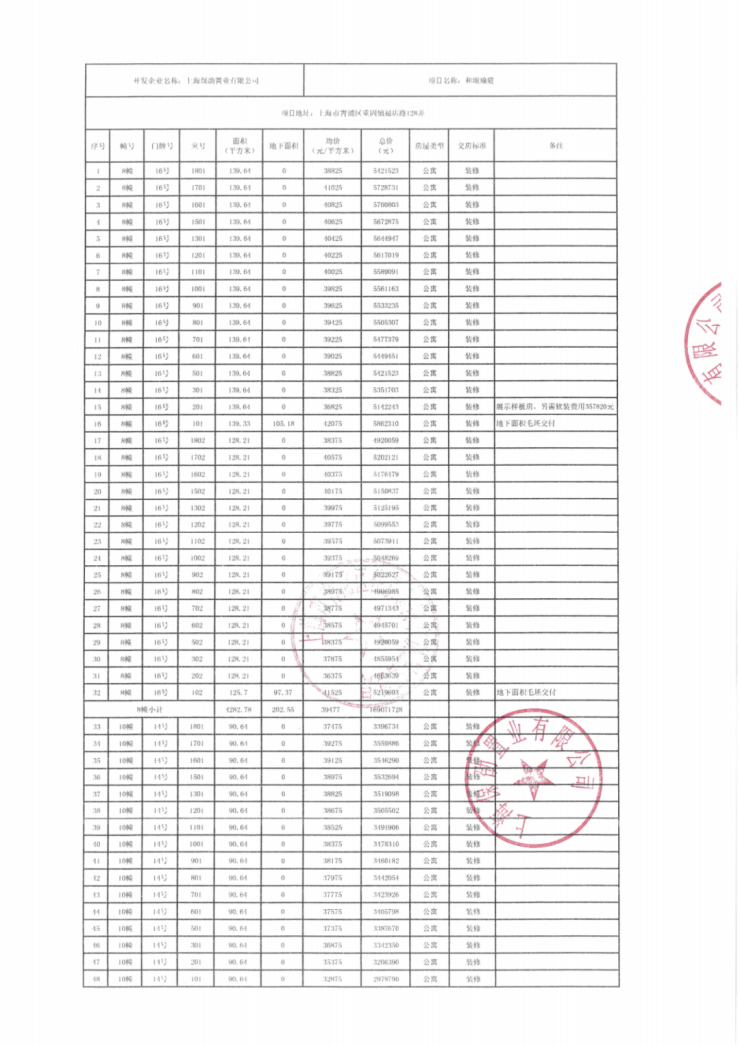 一房一价表