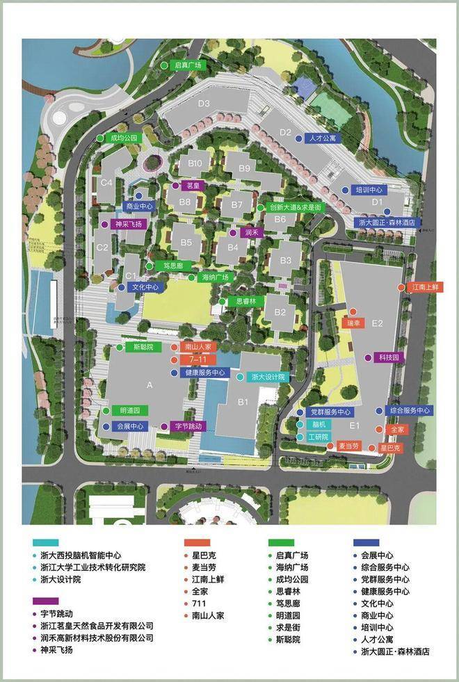 浙大森林业态包括:高科技智慧办公空间、高端写字楼、科创研发场域、星级酒店、人才公寓和共享景观等一系列设施。