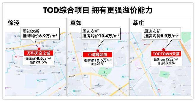 相比普通楼盘,TOD综合项目本身也有较强的溢价能力,莘庄天荟、万科天空之城等TOD项目都已给出有说服力的结论。