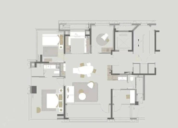 LDKB一体化,客厅面宽约4.8米,餐厅与客厅等面宽,两侧预留大面积餐边柜空间,厨房附赠飘窗;