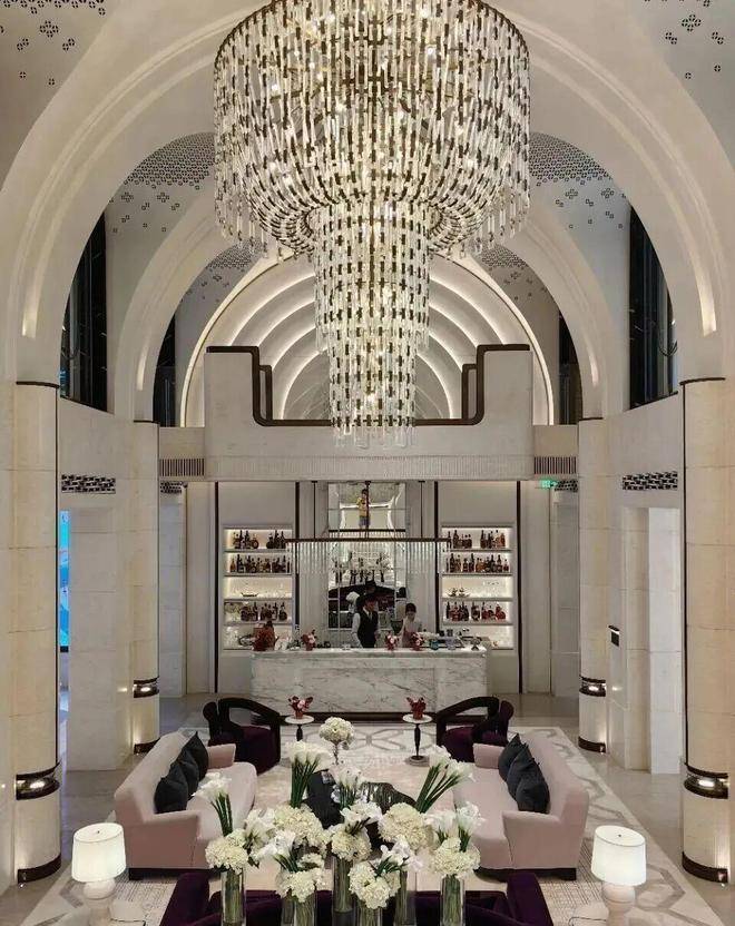 高定公区,重塑海派归家史诗;隐奢门庭:社区大门以古琦黑奢石手工锻造弧形幕墙,将珠宝镶嵌工艺融入建筑肌理;