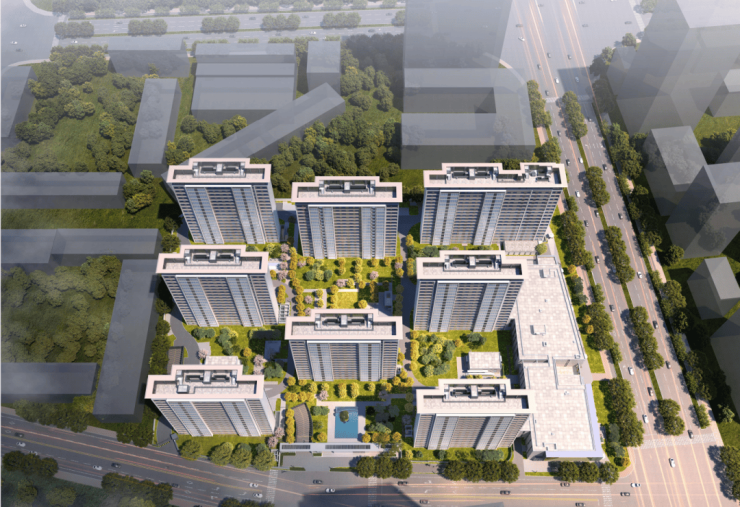 建筑规划:3层邻里中心1栋、16层住宅1栋、17层住宅4栋、18层住宅3栋