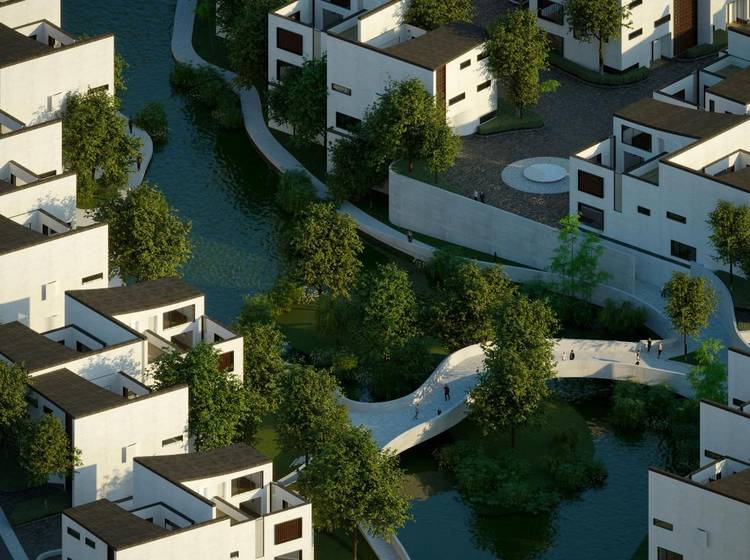 • 生态营造:引水入园打造内部循环活水系统,形成溪、池、瀑、潭等多重水景,滋养社区微气候与生态环境。