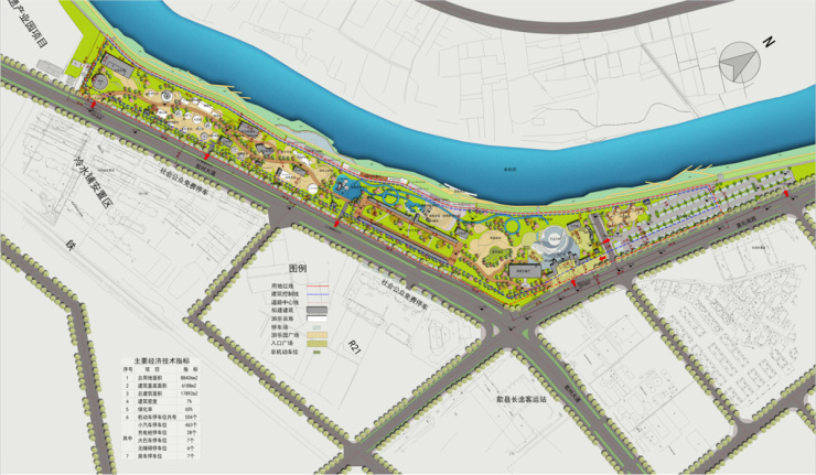 歙县丰乐河公园项目位于歙州大道及新汽车站以北、丰乐河东南,地块东侧为40m宽富礼南路(规划名)、西侧为加油站。丰乐河公园规划设计方案于2018.06.12-2018.06.21进行过公示,后因土地报批、项目投资等原因未能及时开工建设。现项目开发建设单位根据较新市场调研结果,拟调整规划设计方案,提出以民俗文化商业为吸引点,以亲子游乐为辅助业态的商业旅游综合体定位,同时提升地块整体的景观、绿化、亮化等基础设施,打造一个区别于现存旅游项目的特色园区。在此基础上,拟规划建设一座“天空之树”观景平台,规划高度50米,建成后将成为区域的新地标。