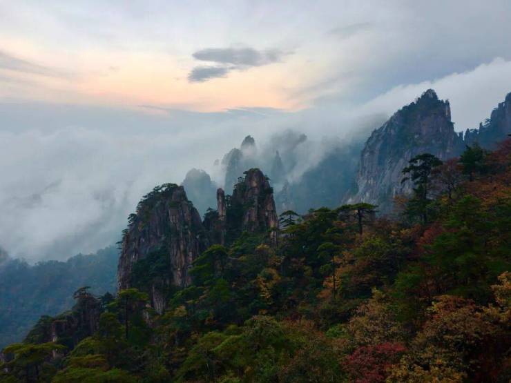 黄山秋天美而短暂,秋景自山上向山下逐步蔓延,时间将持续一个月左右。