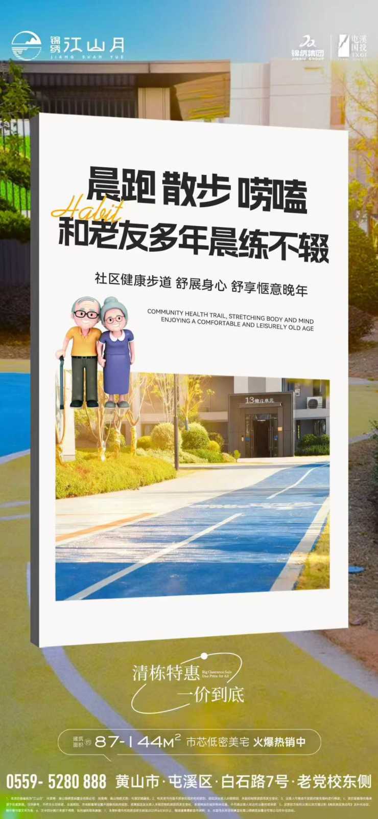 晨光微熹时,在社区的健康步道上迈开脚步,与老友并肩晨跑、慢走,唠唠家常里短,这样的日常,是锦绣江山月为长者勾勒的晚年模样。