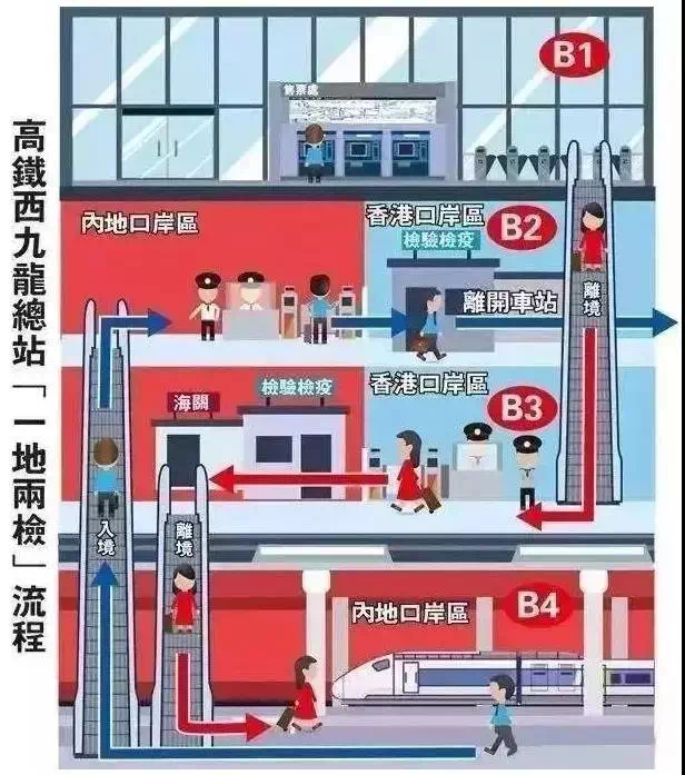 在同一层设"内地口岸区"和"香港口岸区",