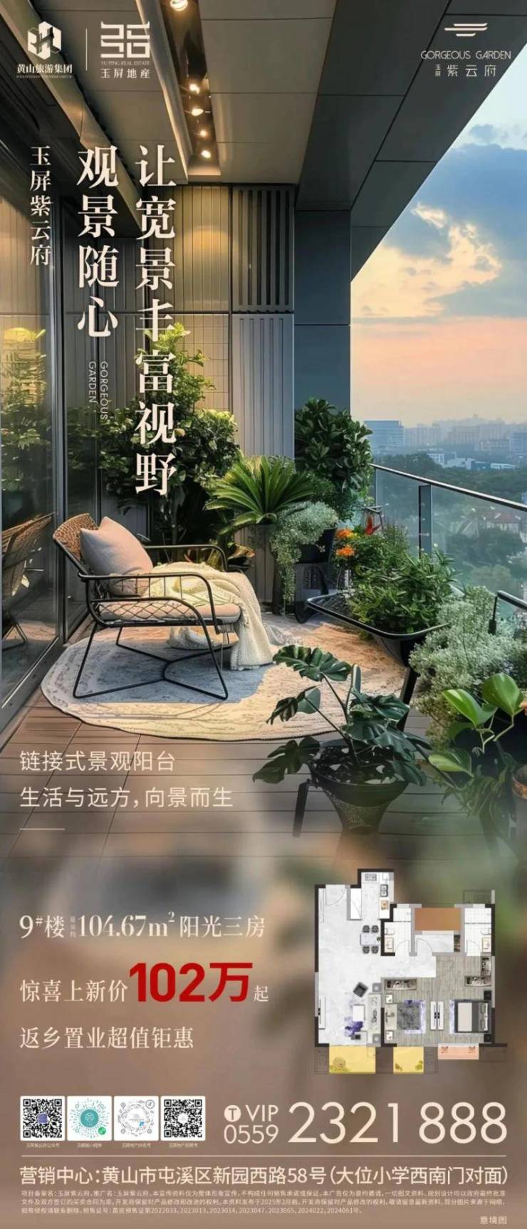 玉屏紫云府阳光高层9#楼,观景随心,让宽景丰富视野,链接式景观阳台,生活与远方,向景而生。