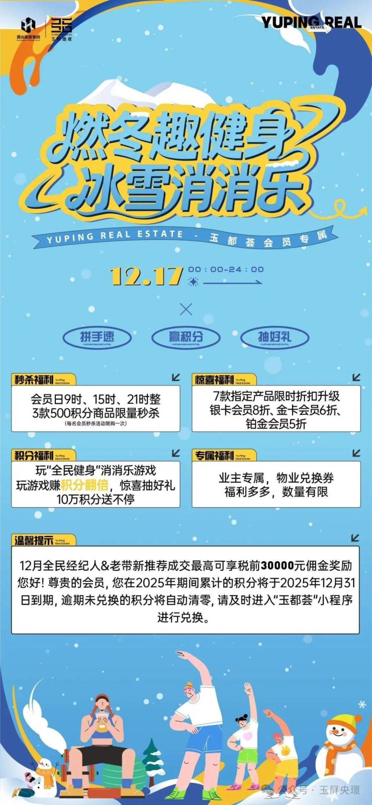玉屏地产|燃动趣健身 冰雪消消乐——玉都荟12月会员日17号如约而至