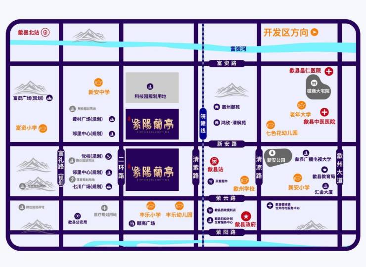紫阳兰亭坐拥歙县富丰新城核心区,具备成熟的生活氛围。项目周边道路四通八达,附近有自配居然之家、颐高购物中心等,无论是日常生活还是周末消遣都能得到很好的满足。