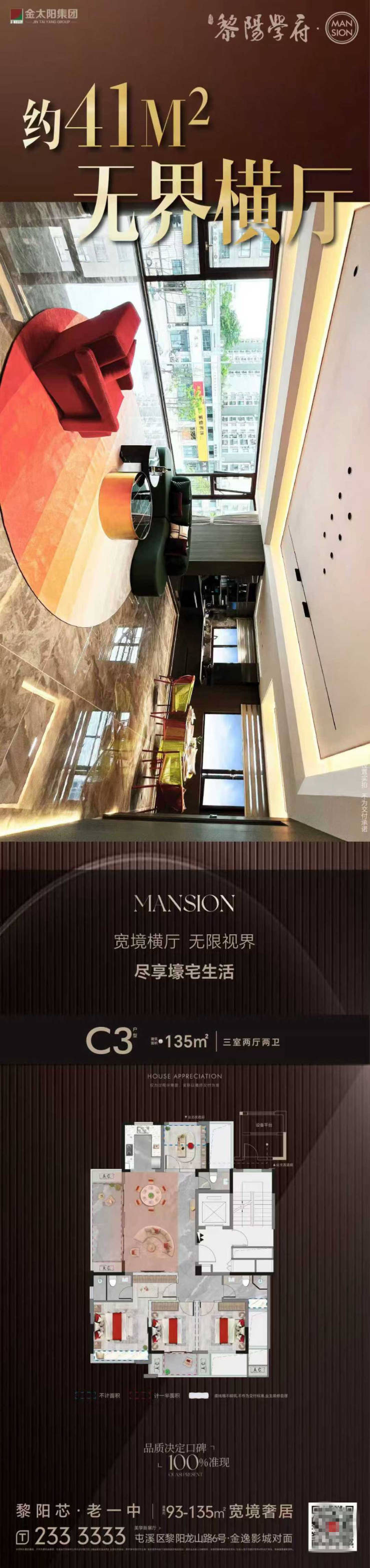 当横厅的尺度突破常规想象,当空间的边界被重新定义,黎阳学府建面约135㎡三室两厅两卫C3户型,以约41㎡无界横厅,勾勒出独属于豪宅的生活图景。横厅,不再是简单的起居空间,而是家庭的社交核心、生活的艺术主场。巨幕采光面带来的无限视界,让城市风光成为客厅的天然背景,阳光肆意涌入,每一个角落都被温暖包裹。