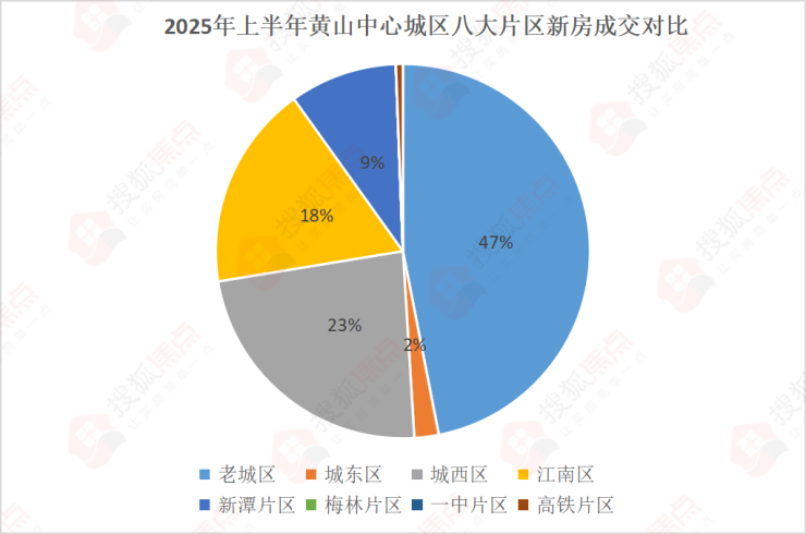 5、2025上半年黄山中心城区新房成交区域占比:老城片区占比最高