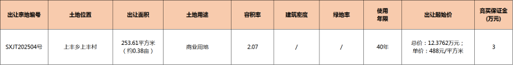 (五)SXJT202504号地块土地竞得人在竞得土地后15日内和歙县上丰乡人民政府签订监管协议,凭监管协议签订出让合同。监管协议主要内容有投资强度、违约责任等(具体内容详见附件)。