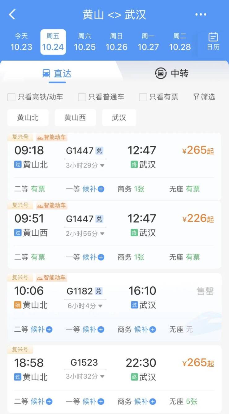 据12306查询,目前从黄山北到武汉,最快为3小时29分,日常开行每日仅3趟,从合肥中转较多。沪渝蓉高铁合武段开通后,时速大幅提升,黄山至武汉即便从合肥换乘,总旅行时间也有望压缩到3小时以内,出行将更加灵活方便。