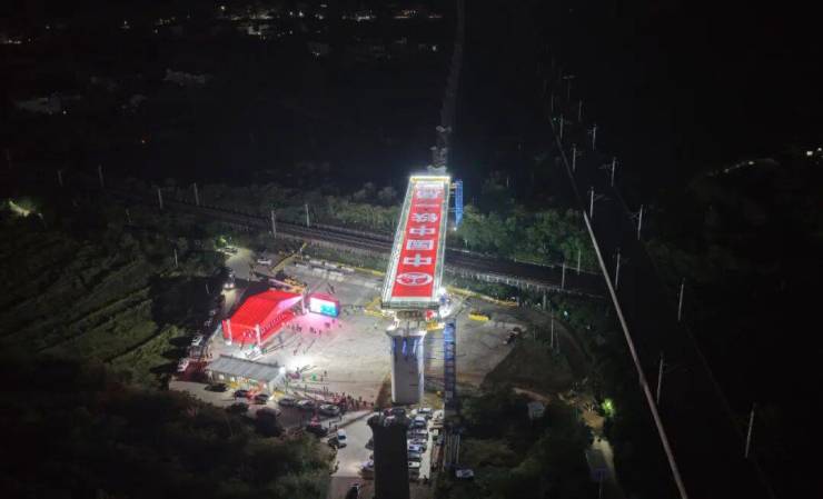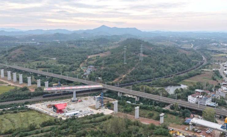 10月21日18时18分,在麻城市曹家坳村,沪渝蓉高铁合武段跨京九铁路特大66号墩T构转体连续梁,67分钟后,成功跨越既有京九铁路,精准落在设计桥位上,顺利实现对接。