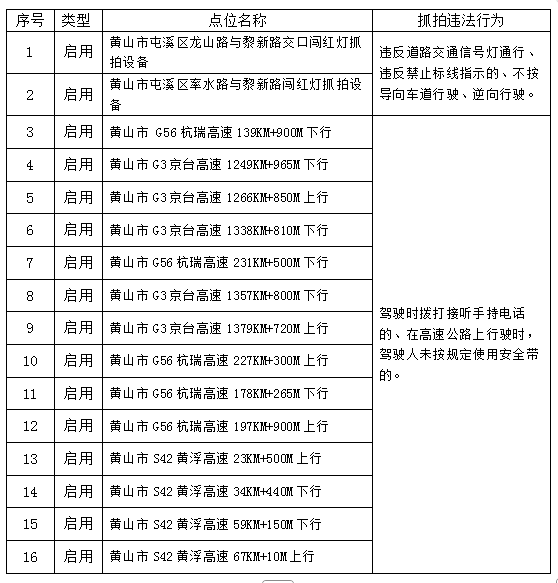 为进一步规范道路交通秩序、预防和减少道路交通事故的发生,根据《中华人民共和国道路交通安全法》、《中华人民共和国道路交通安全法实施条例》及《安徽省实施〈中华人民共和国道路交通安全法〉办法》等有关规定,黄山市公安局交通管理支队将于2026年2月3日零时启用16套电子警察抓拍设备。