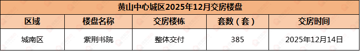 2025年12月,黄山中心城区紫荆书院交付,共计385套住宅房源。