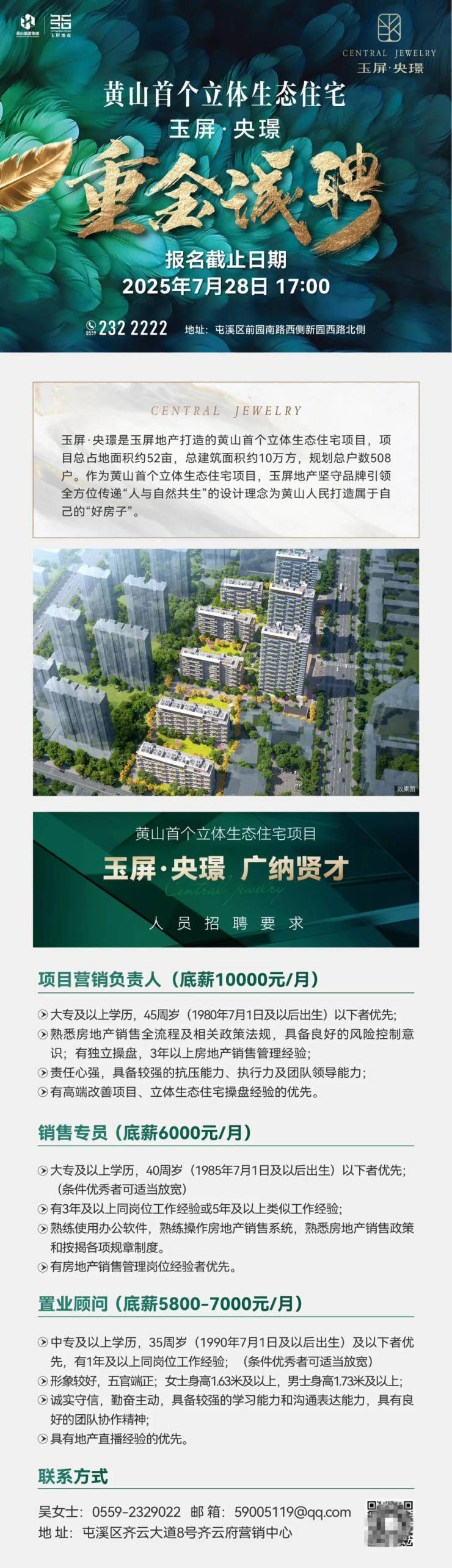 招聘启事|黄山首个立体生态住宅项目 重金诚聘!