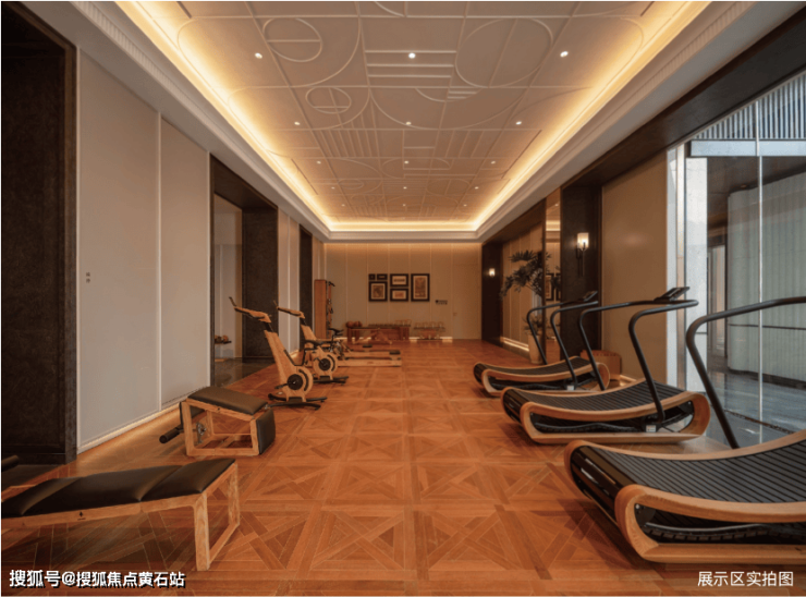 传承百年工艺手工打造拼花地板,隐匿式氛围光模拟塞纳河畔落日,器材选择上,为业主定制的沃特罗伦(WaterRower)品牌健身房, 全部采用珍贵的全木质健身器材,触感温润细腻