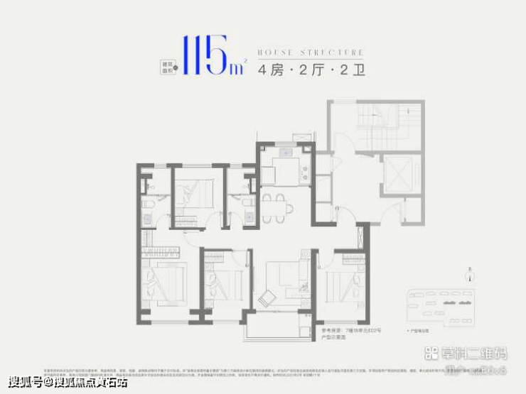 115㎡四房两卫(四期):总价500万起,一梯两户,四开间朝南(三房+客厅朝南),南北通透,奢阔空间尺度,适配多子女家庭或三代同堂。