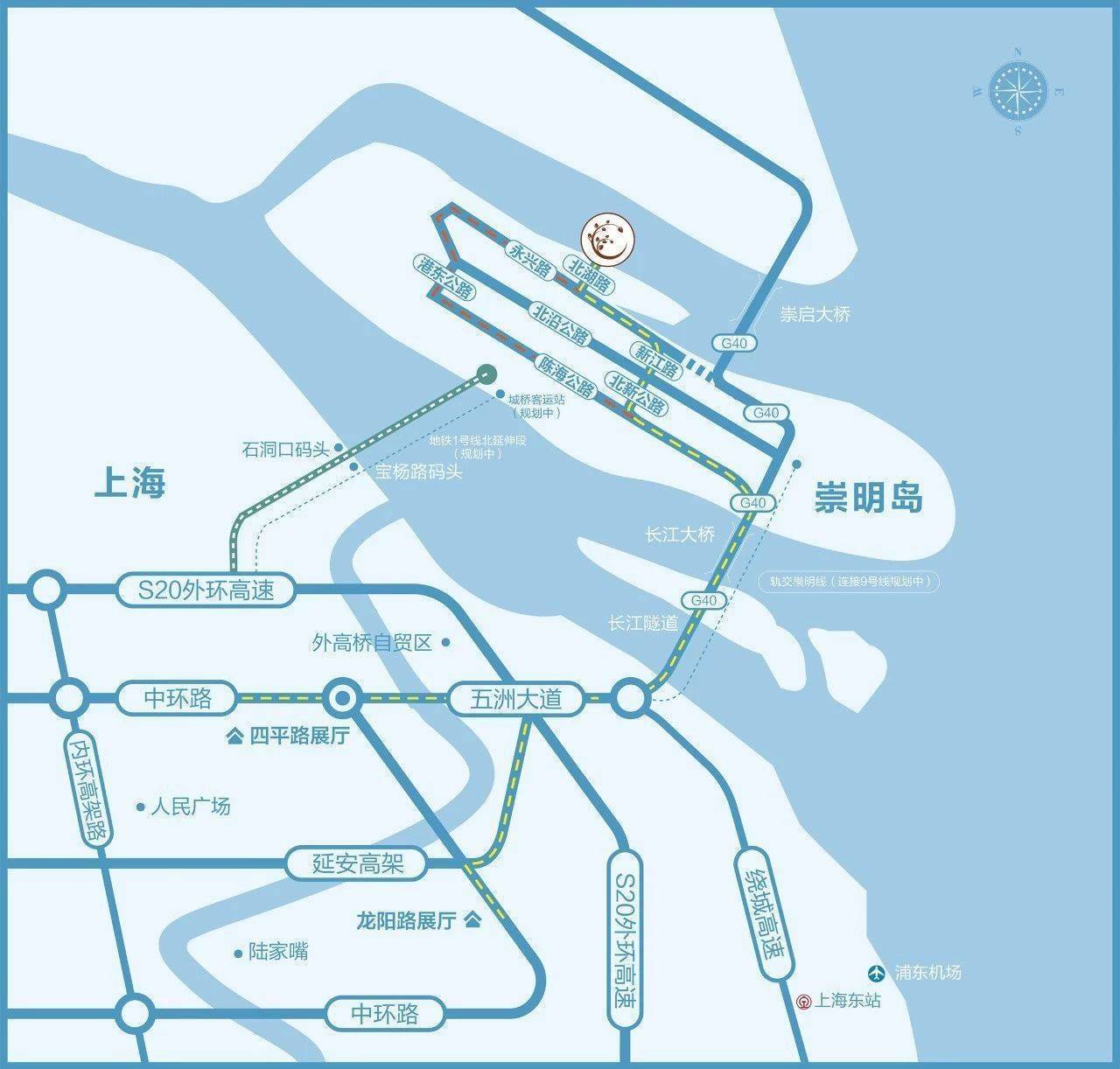 经上海长江隧桥,直达公交来往崇明岛和上海市区: