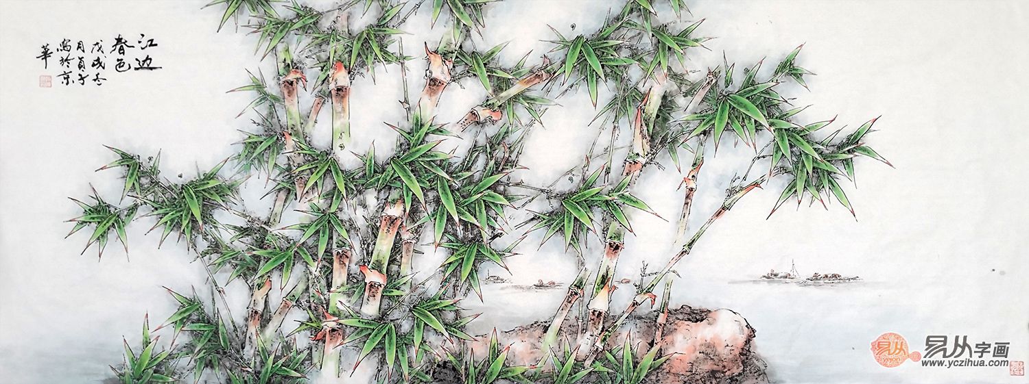 赵俊贞六尺横幅竹子图《江边春色》(作品来源:易从网)