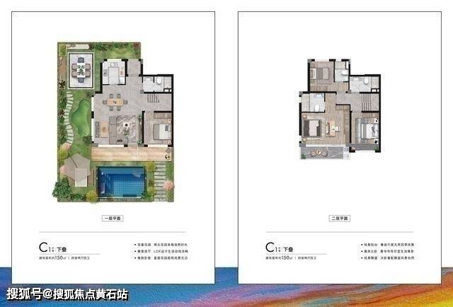 东滩海上明月叠拼别墅共两个面积段,95平三房两厅两卫和150平的四房两厅四卫,总价230万起!