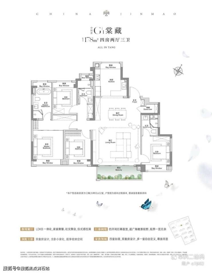 建面约178㎡,参考总价900-1000万,四室两厅三卫