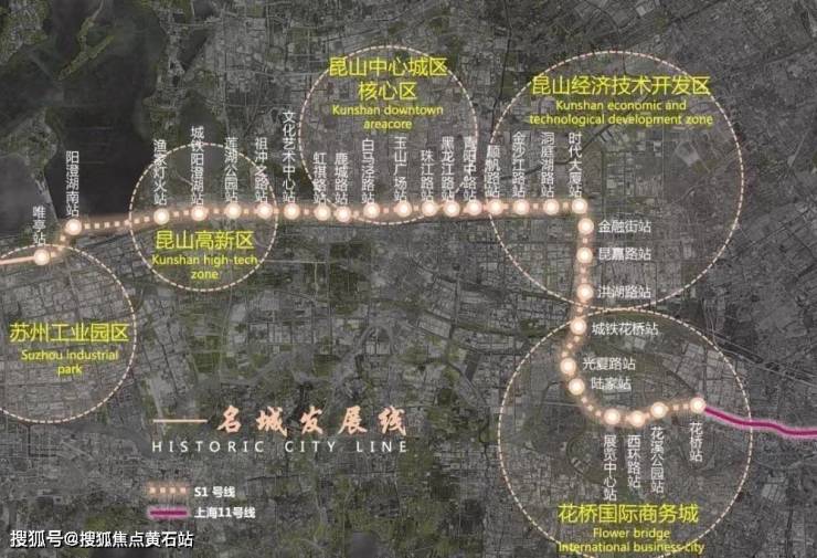 区域联动,交通先行。上海地铁11号线是国内首条跨省轨道线,2013年正式开通运营,日均客流量超5万人次,花桥段打破昆山-上海轨道交通壁垒,从此“双城”变“同城”。不仅如此,沪宁高速、312国道、上海绕城高速等道路在此交汇,C7跨省公交专线也已开通,还有在建中的轨道交通S1线与上海11号线在花桥站同站换乘,共同构建了无缝对接上海的城市多维交通体系。“不是上海,就在上海”从一句响亮口号化为生动实践。