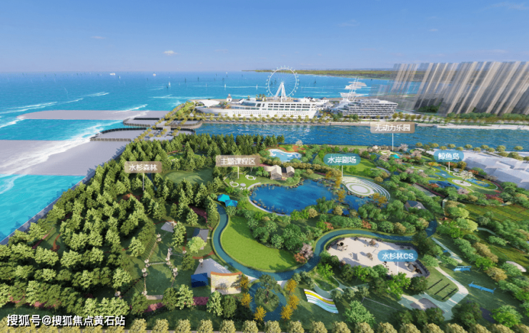 项目由南往北建筑高度依次递增,让南侧的海景及滩涂景观视线延伸至社区内部。小区入口依托商业建筑形成内凹式聚集广场,与小区内部的南北景观轴线相互串联,同时在商业轴线的两侧布置组团景观,提升住宅于环境的相互渗透,让居民真正融入到舒适的环境中。