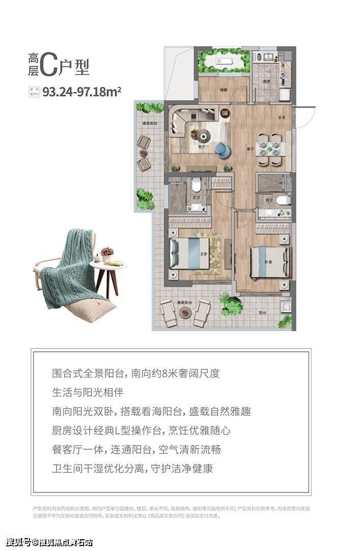 布局合理,空间阔绰,不仅能安放家庭的理想生活,也能尽享滨海胜景。