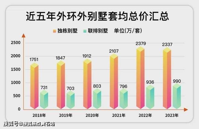 诺大的外环外,2023年联排别墅的套均总价在约990万/套,独栋别墅套均总价更是高达2337万/套。
